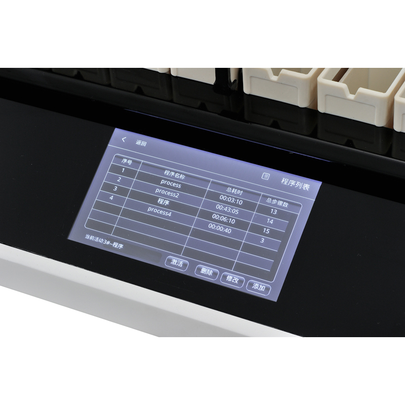 ◇ 染色次序、液體名稱、缸號(hào)、時(shí)間、可由用戶自行編程編譯錄入并自動(dòng)記憶,浸入時(shí)間較長(zhǎng)的試劑缸可設(shè)置多個(gè)重復(fù)缸,加快染片運(yùn)行速度,并有優(yōu)先級(jí)別選項(xiàng)功能,多染架同時(shí)運(yùn)行時(shí),自動(dòng)優(yōu)化染色進(jìn)程,智能識(shí)別。